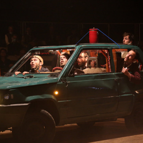 Plan anzeigenDans une Fiat Panda, cinq hommes, cinq frères sont réunis pour la première fois. Au rythme d’une musique joyeusement interprétée par trois artistes multi-instrumentistes, nos cinq garçons ne manquent pas d’idées et d’énergie. Portés, lancers de couteaux, mât chinois, bascules, voltiges, détournement d’objets du quotidien. Autour de la fameuse voiture, ils se chamaillent, ils s’envolent. Et nous emportent avec eux dans ce road trip pas comme les autres. Un voyage hilarant et saisissant.